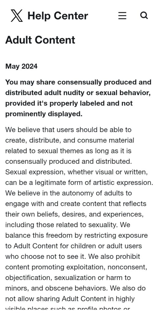 The above photo shows the X adult policy that allows users to share pornographic contents