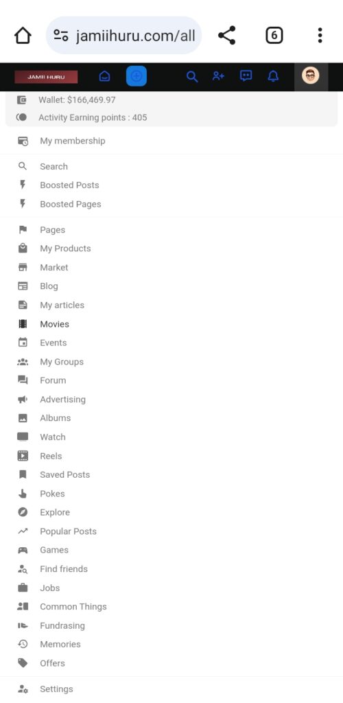 jamiihuru.com social network pays you 1 dollar per each person who click your referral link that you take from jamiihuru.com