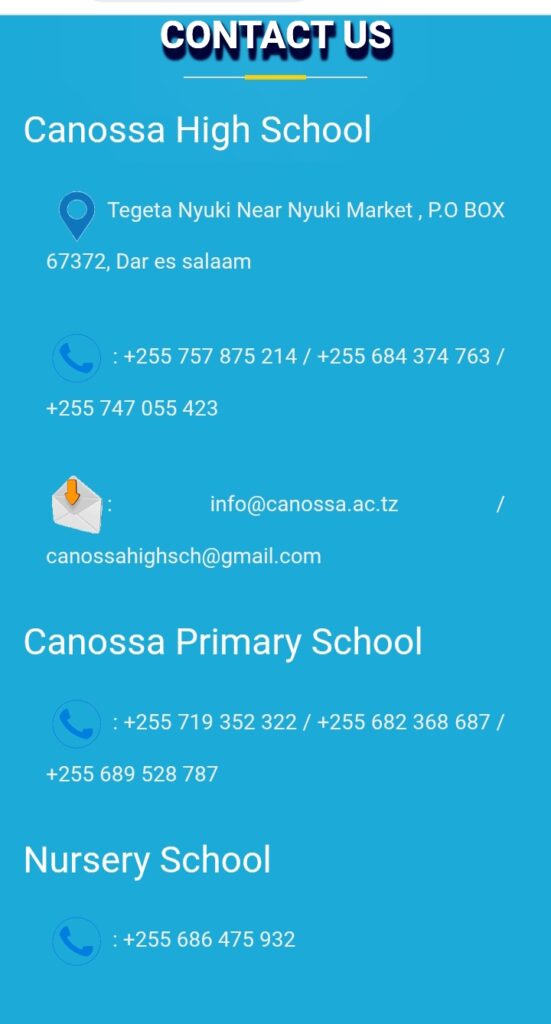 You can visit their website for any updates https://canossa.ac.tz/#contacts